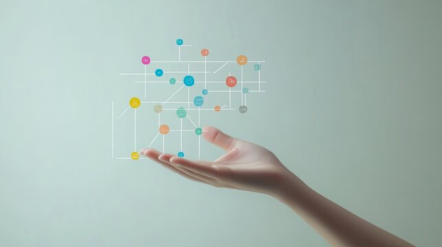 A hand interacts with a digital interface showcasing interconnected hexagonal icons, a central plus symbol representing healthcare technology and innovation