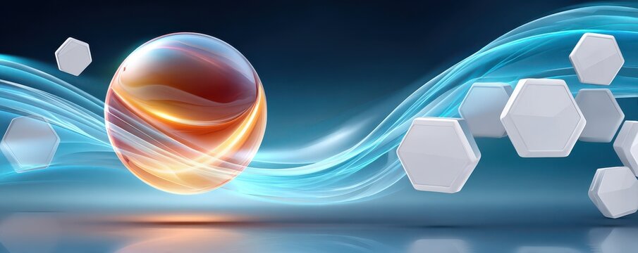 Abstract digital health background with hexagonal tiles and light trails, futuristic medical icons