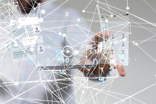 Education on internet, e-learning concept. Person who attends online lessons on a digital screen. Education internet Technology..