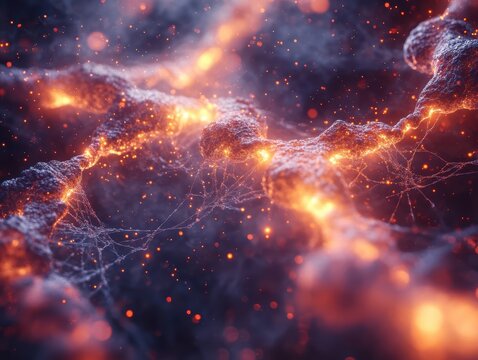 High Detail Representation of a Molecular Structure Showcasing Interconnected Hexagonal Networks Against a Dark Background