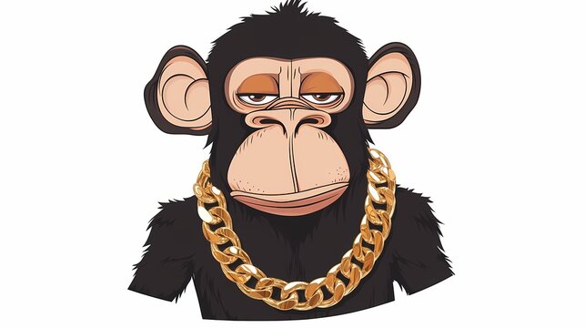 Cartoon chimpanzee character sporting a large golden chain against a white background