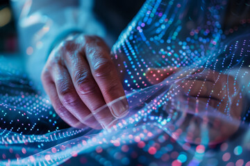 Scientist hands close-up nanomaterial nanotec nanotechnology conducting research fiber microfiber microbiology medicine healthcare pharma production lab laboratory science chemistry genetic genes