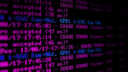 Mining Cryptocurrency process program on display PC. Using Software. Share Found.