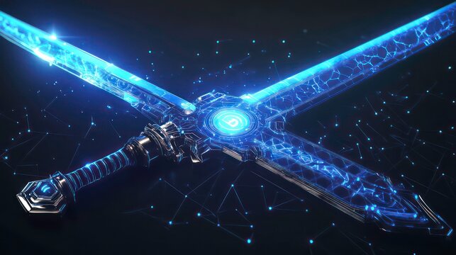 Sci-fi concept of a virtual reality tunnel with glowing red and blue laser lines representing digital conflict and choice