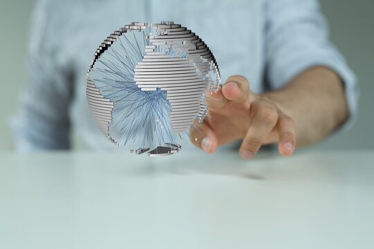 Representing international business through a digital world map and global connectivity, representing the concept of international business or connectivity, digital line