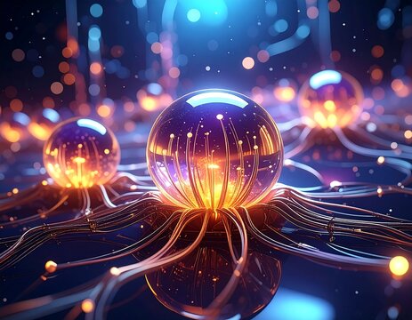 Futuristic Glowing Orbs with Interconnected Network of Light.