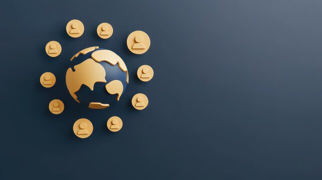 A stylized globe surrounded by user icons, symbolizing global connectivity and networking in a modern design.