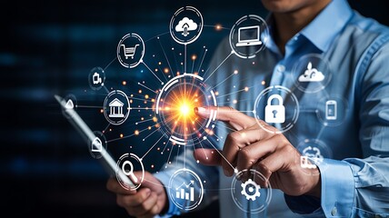 Digital network technology with connectivity icons