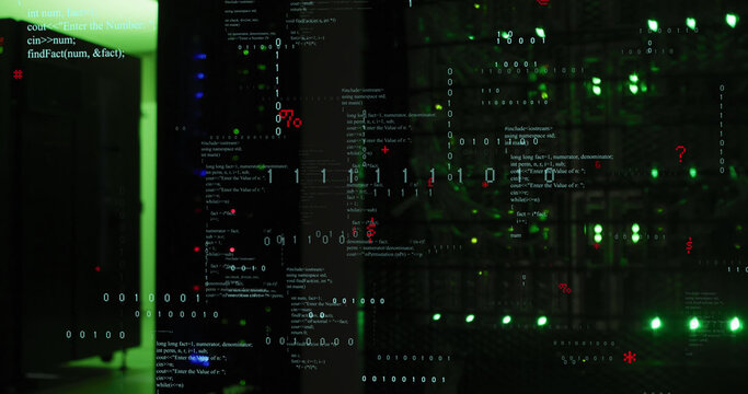 Image of binary coding over server room