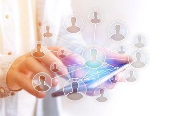 Digital network connectivity with smartphone interface icons