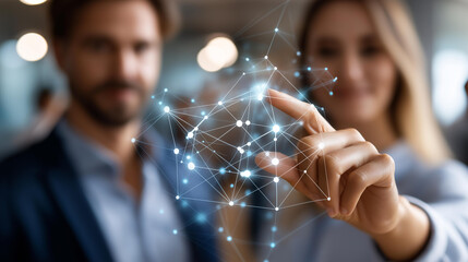Digital diagram graph interfaces on blurred background, virtual screen connections icon, coworking team business meeting, startup project collaboration, with copy space