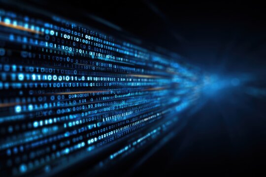 Abstract data stream visualization with colorful glowing binary light lines merging into digital information flow for big data analytics cloud computing and high speed networking
