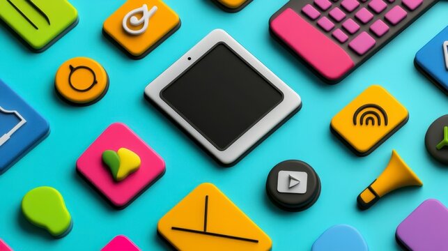 Colorful Digital Icons on a Bright Blue Background for Creative Projects