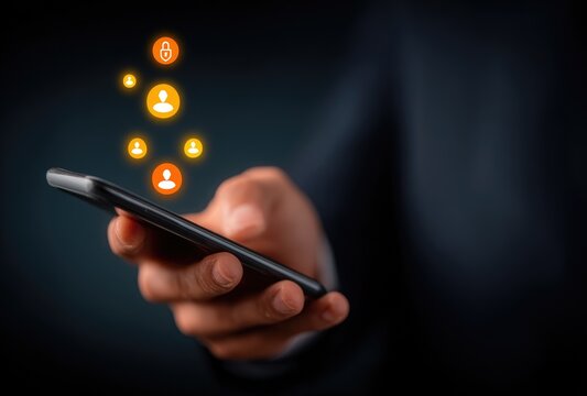 Digital Network Interfaces Overlay On Mobile User Images