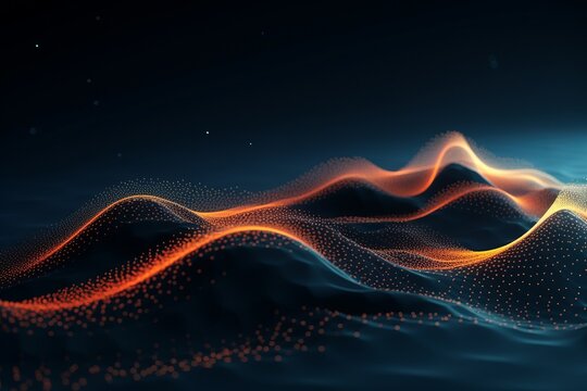 Data technology illustration. Abstract futuristic background. Wave with connecting dots and lines on dark background. Wave of particles.