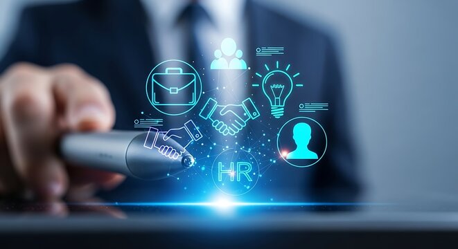 Modern human resources management concept with digital interface and professional interaction