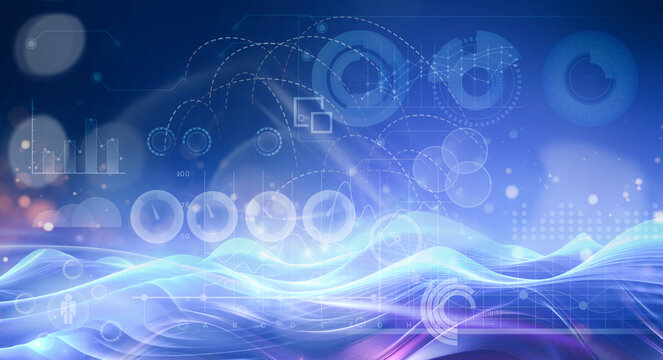Futuristic tech inspired background with a faint grid pattern and glowing holographic icons