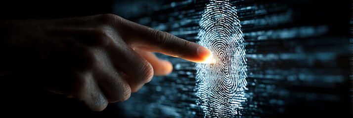 Biometric Fingerprint Interface Touched by Hand in Futuristic Security Technology