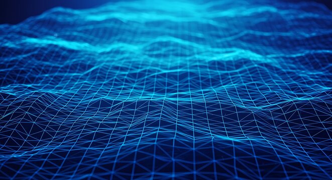 Abstract digital network illustration of a blue grid pattern on a blurred background for modern design