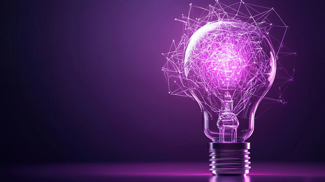 Purple lightbulb innovation network technology abstract glowing digital concept science imagination creativity idea