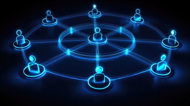 interconnected people icon illuminated by blue light, symbolizing global communication and connection. Abstract digital network illustration