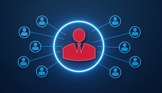 Network Connectivity Visualization: A stylized image showing a central red person icon connected to a network of blue person icons, emphasizing interconnectedness.