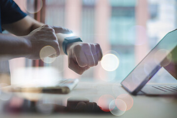 Double exposure of digital world with smartwatch technology