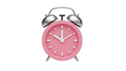 3D Pink Alarm Clock on transparent background