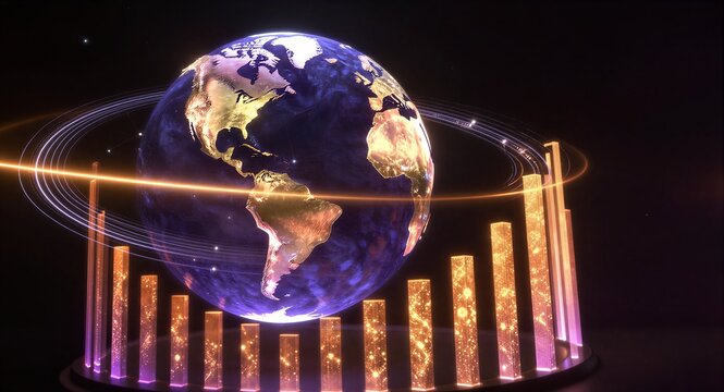 Digital globe with orbiting data points on grid