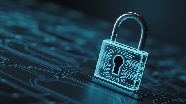 Cyber security concept illustrating data protection and digital information safety with a padlock technology abstract representing online privacy and encryption of digital assets