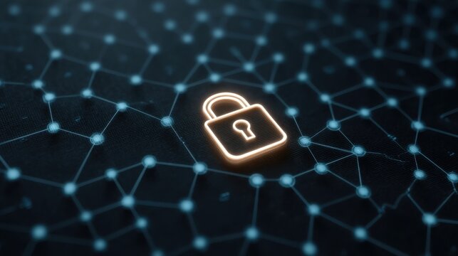 Digital padlock symbolizing cybersecurity on virtual data network