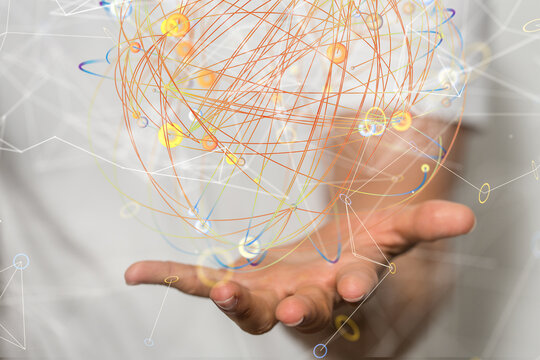 Hand holding with virtual cloud computing icon over the Network connection, Cyber Security Data Protection Business Technology Privacy concept