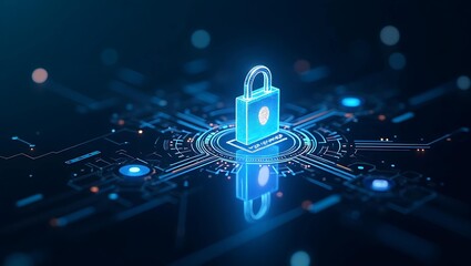 Digital glowing blue lock icon symbolizing cybersecurity data protection digital security technology concept cyber safety lock protection encryption privacy security system digital