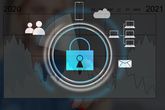 Data protection technology business graph presentation concept From a laptop showing an overview of the corporate business data protection process