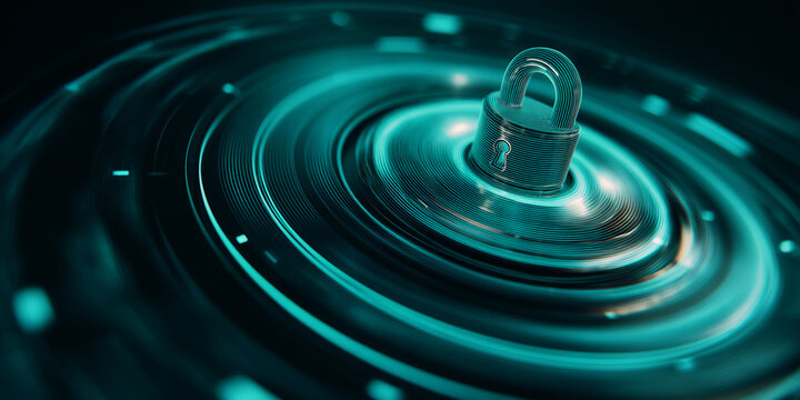 Digital padlock symbolizing data security on abstract background
