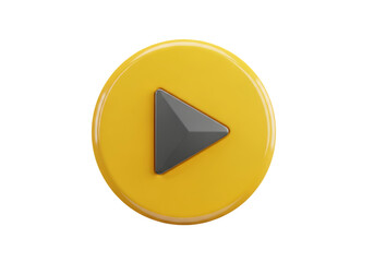 Illustration of a 3d render of a yellow play button icon, isolated on transparent background on transparent background