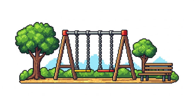 Pixel Art Playground with Swing Set and Bench