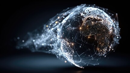Digital globe with blue network connections on dark background