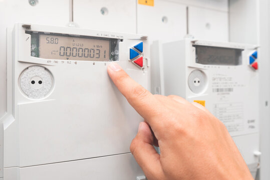 Smart meter or digital meter. Close up. Digital meter transmits energy consumption. Electric energy use is recorded and transmitted automatic. Selective focus.