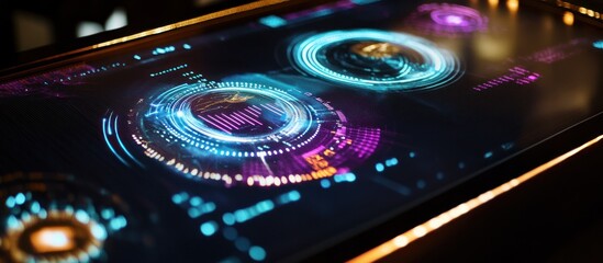Futuristic digital interface with data circles on dark background