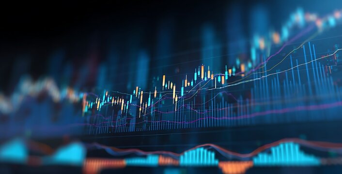 Pulsing 3d techno lettering floating on dark blue gradient with lens flare neon glitch