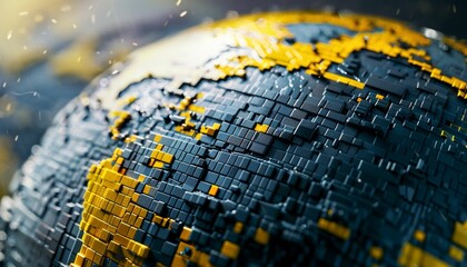 Abstract 3D Puzzle World Map in Yellow and Black. Generative ai