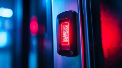 Red QR Code Scanner on a Steel Surface with Blue LED Lights