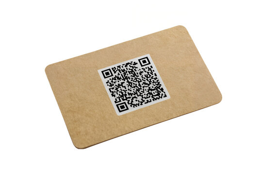 A tan card with rounded corners and a qr code sticker on the surface on transparent background