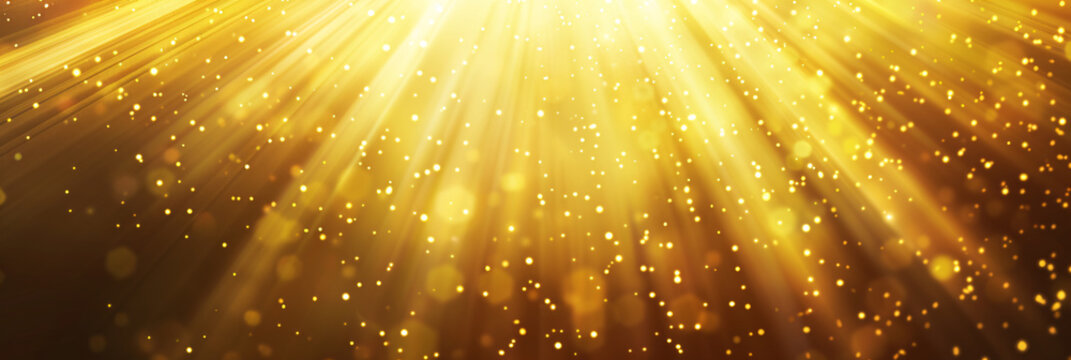Light rays burst outward from a central point, radiating pastel colors, with glittering specks