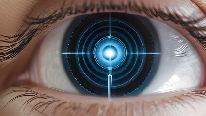 Visual representation of laser and glaucoma eye Surgery showing a close-up of an eye with reticle or target overlay - also useful for explaining LASIK procedures