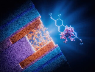 Molecular biology cell membrane rupture, abstract digital graphic design element, cellular breakdown, biological destruction, membrane disruption, with copy space