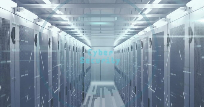 Modern server room with digital interface callback effects