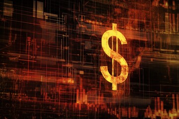 Data processing visualization with dollar sign and abstract patterns in technology background, scope scanning over diagrams and data processing