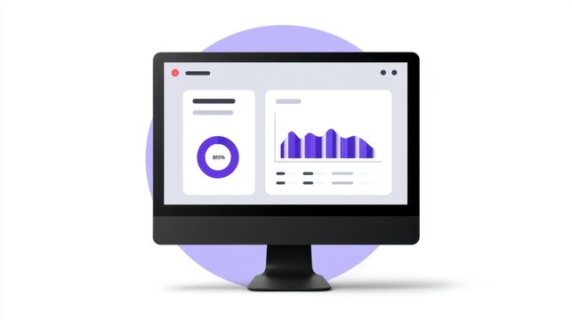 Modern computer monitor displaying analytics dashboard with structured data visualizations and colorful graphs in a minimalistic design